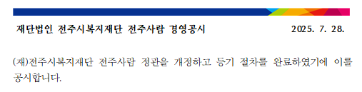 상호명 : 재단법인 전주시복지재단 전주사람 [대표자명] 윤방섭 [사업자등록번호] 849-82-00212 [기관대표메일주소] jjwf1004@daum.net