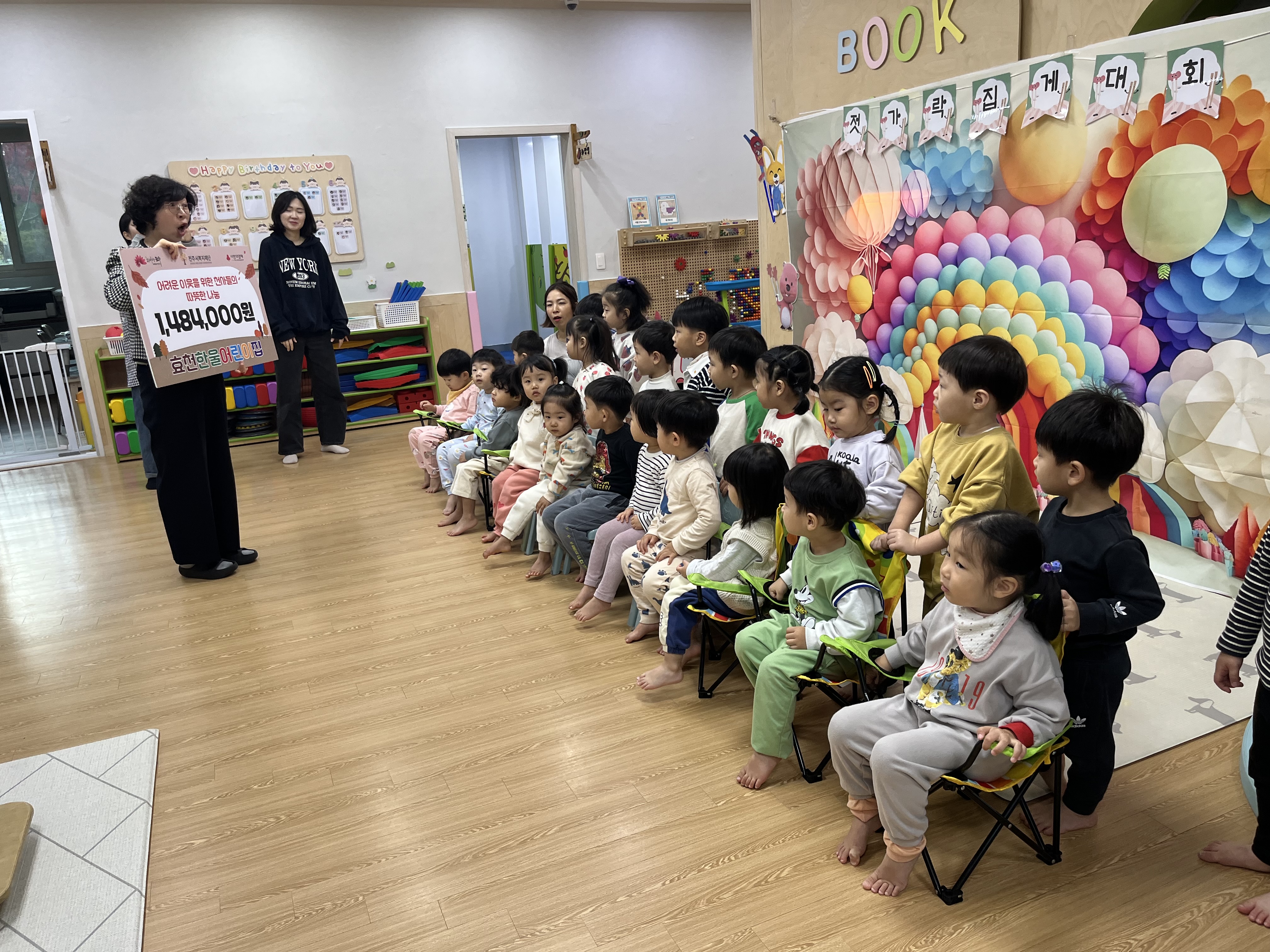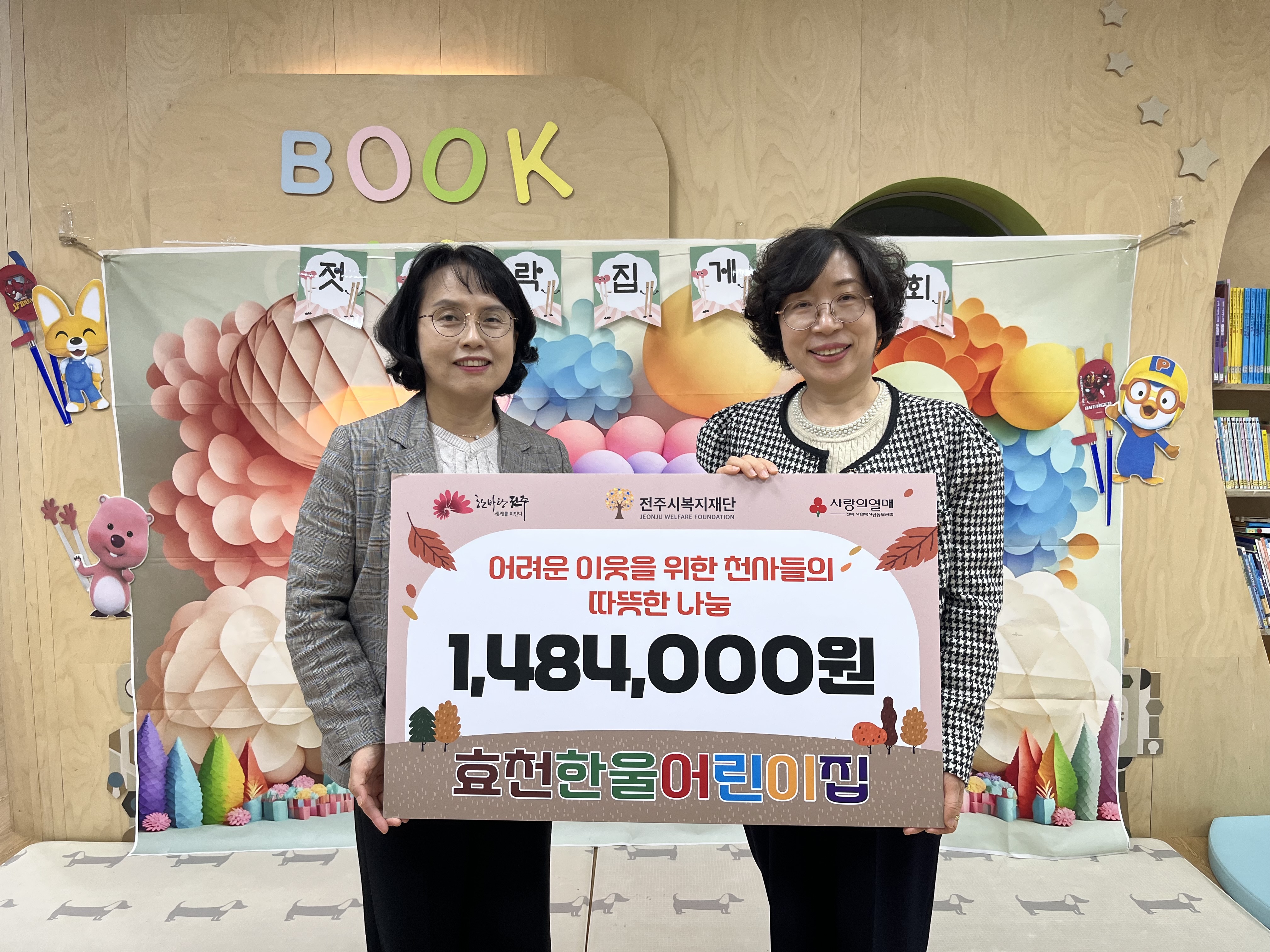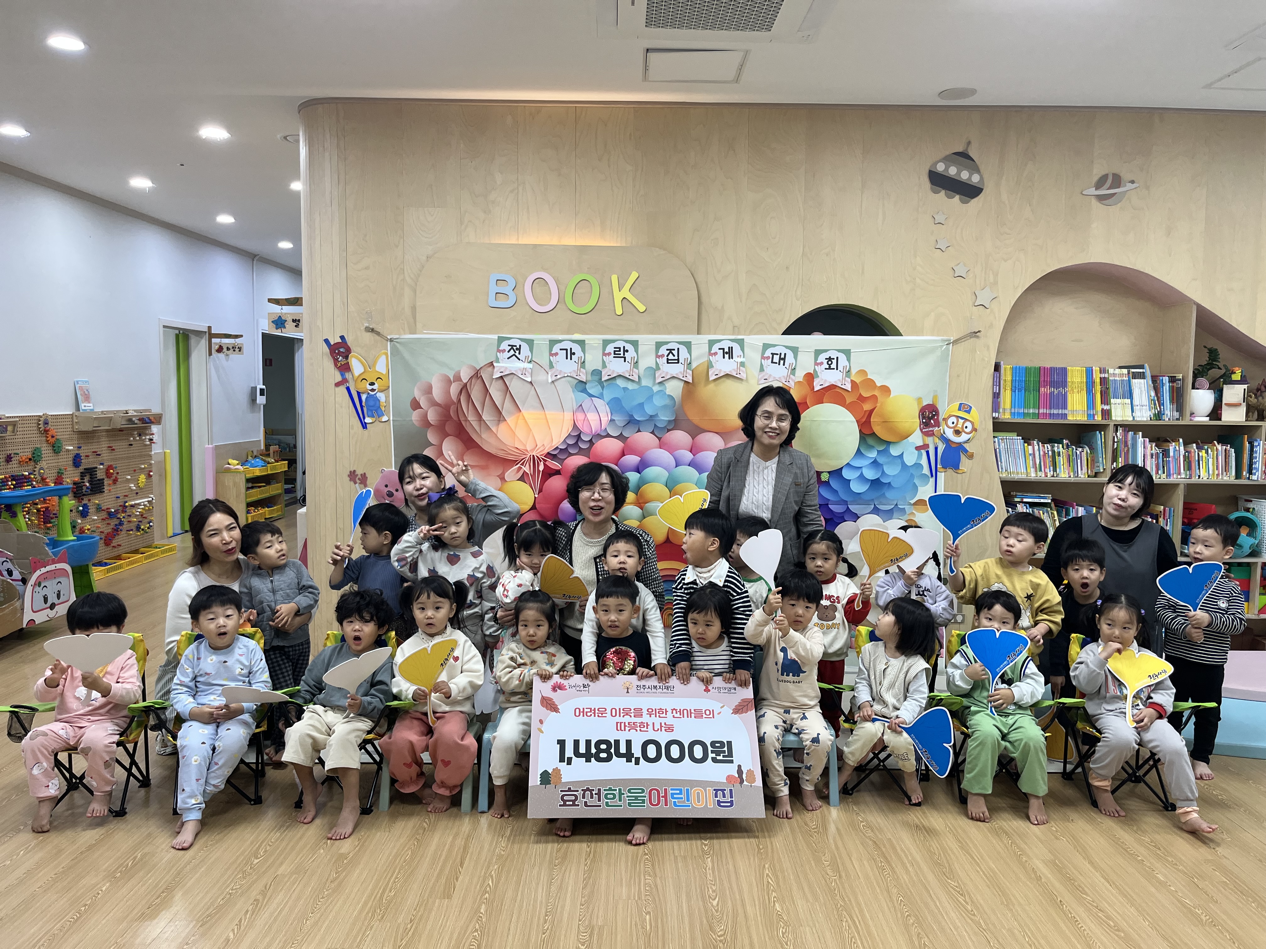 전주시 효천한울어린이집이 학부모·원아·지역주민이 함께 준비한 프리마켓 수익금 1,484,000원을 전주시복지재단에 기탁했습니다.
