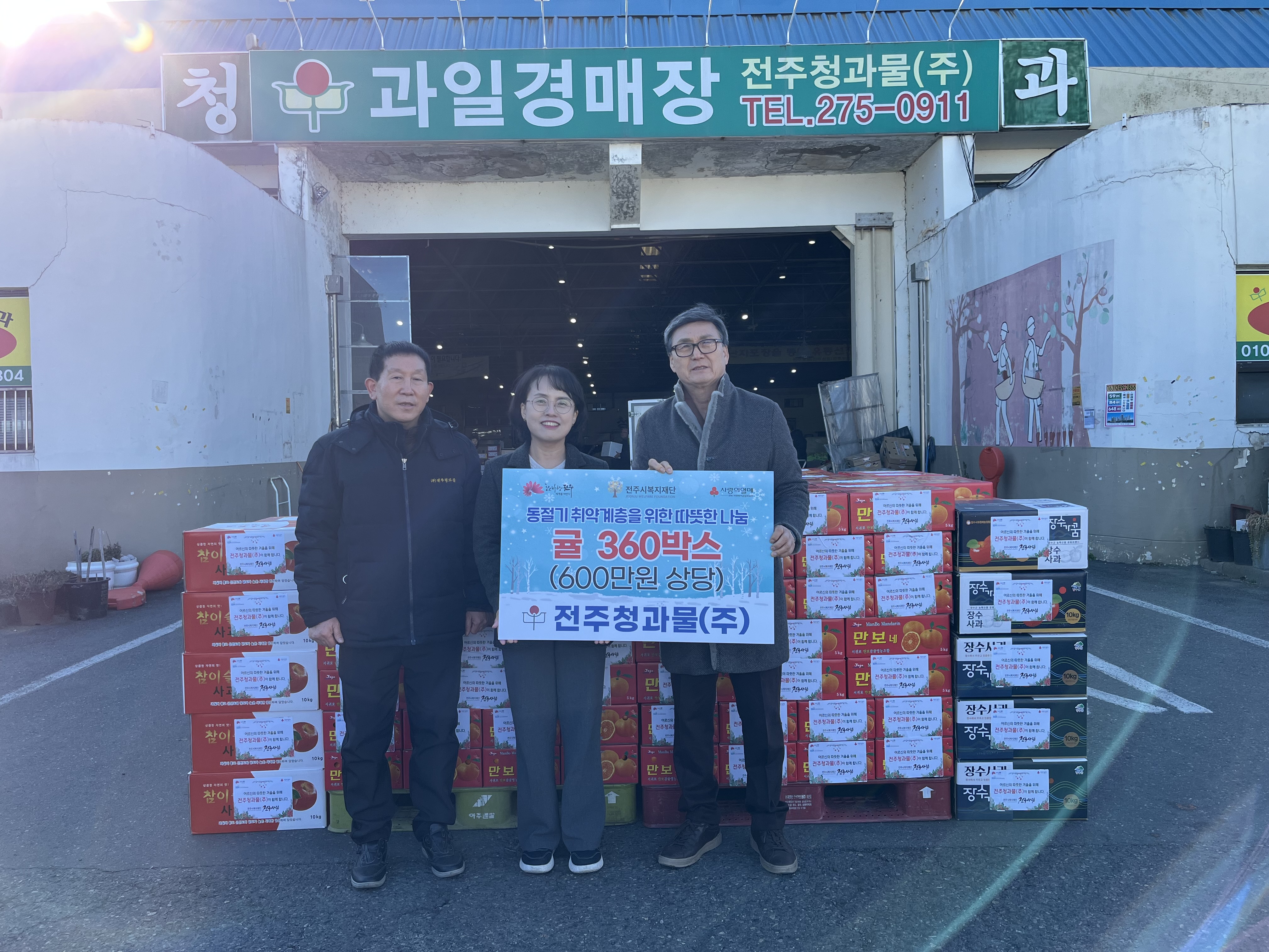전주청과물㈜이 연말을 맞아 취약계층을 위한 과일 나눔으로 지역사회에 온기를 전했습니다.